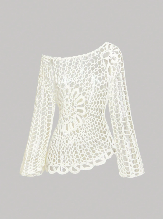 SHEIN MOD Women's White Crochet Beach Cover Up,Country Concert Outfit