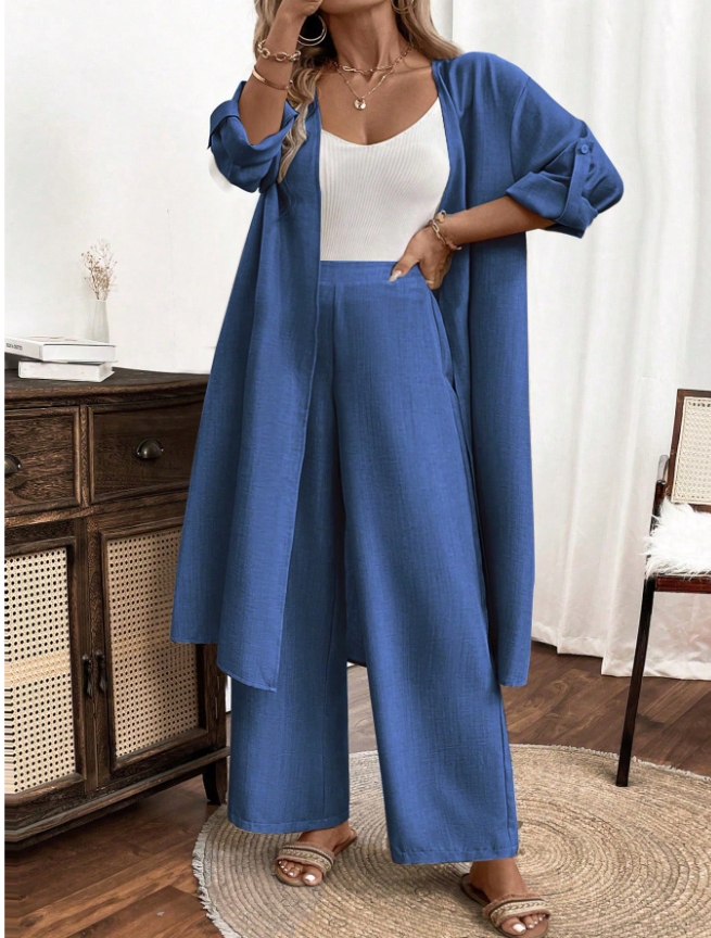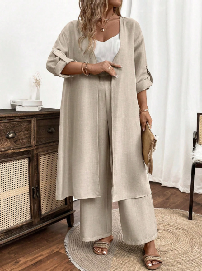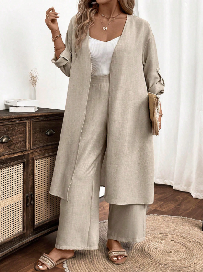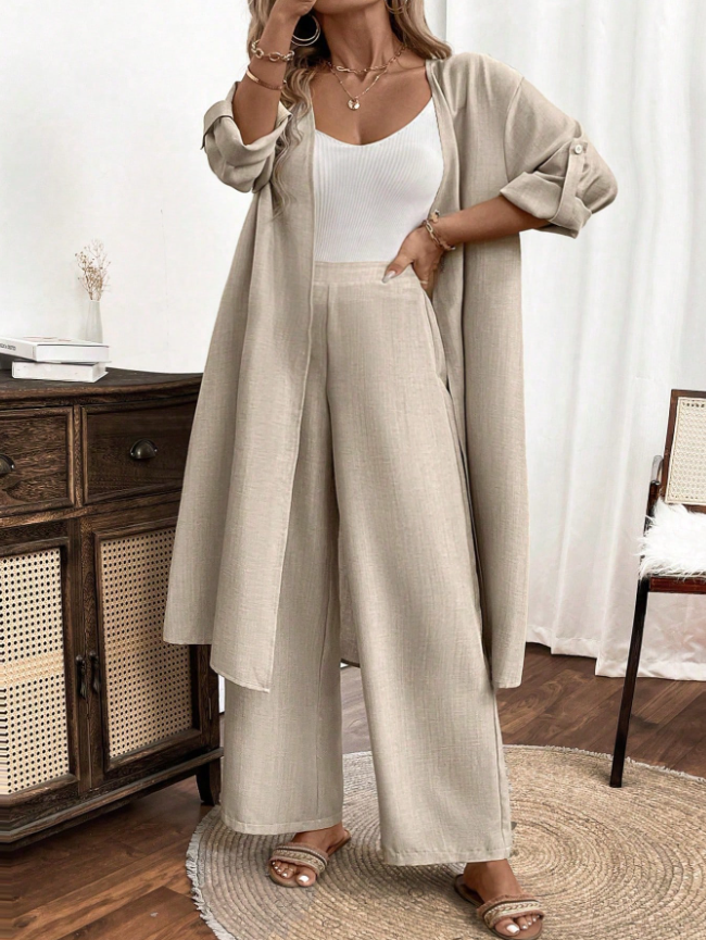Swim Chiccia Summer Women's Solid Color Side Slit Long Kimono Cover Up